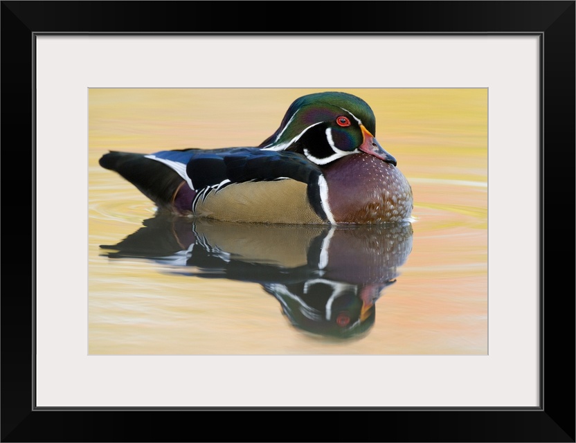 <p>wood duck (Aix sponsa), Reflection, Swimming, Male, Lapeer State Game Area, MI</p>