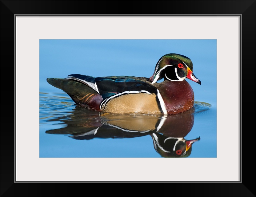 <p>wood duck (Aix sponsa), Reflection, Swimming, Male, Lapeer State Game Area, MI</p>