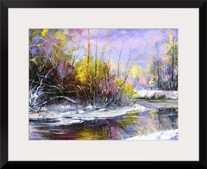 Art Contemporary Art Landscapes River, Creek and Stream Snowscapes Trees Painting