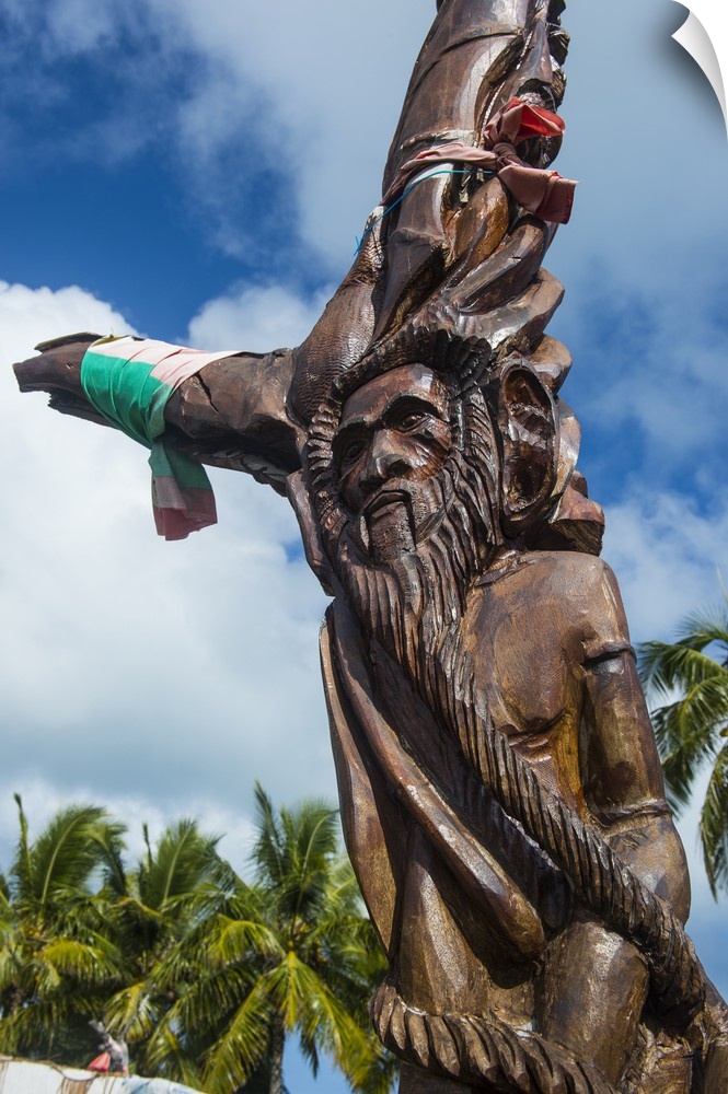 <p>Wooden carvings on the Monument des Dix-Neuf, Ouvea, Loyalty Islands, New Caledonia</p>