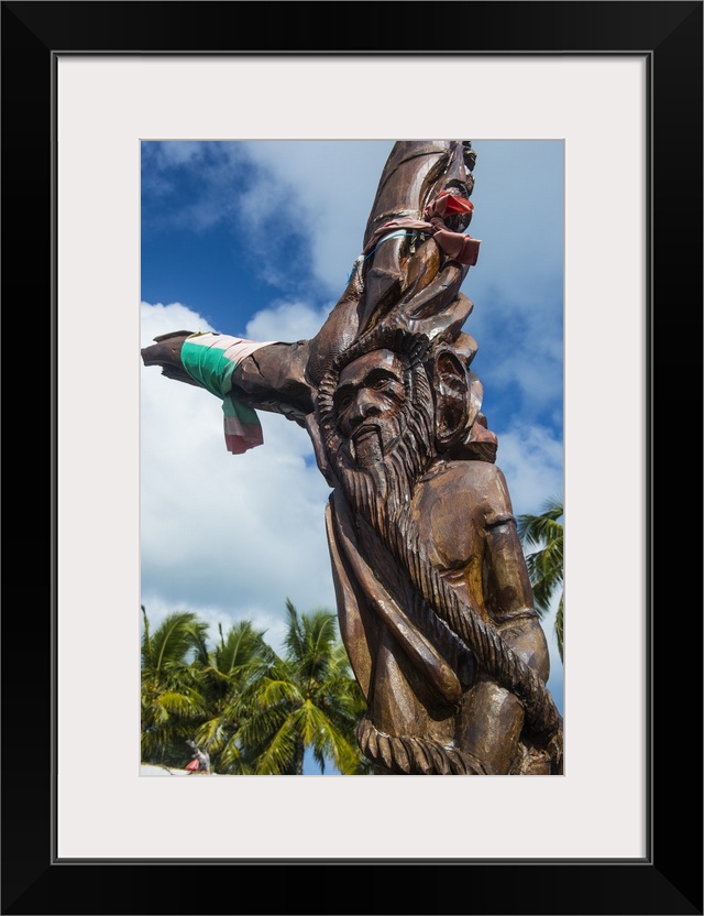 <p>Wooden carvings on the Monument des Dix-Neuf, Ouvea, Loyalty Islands, New Caledonia</p>