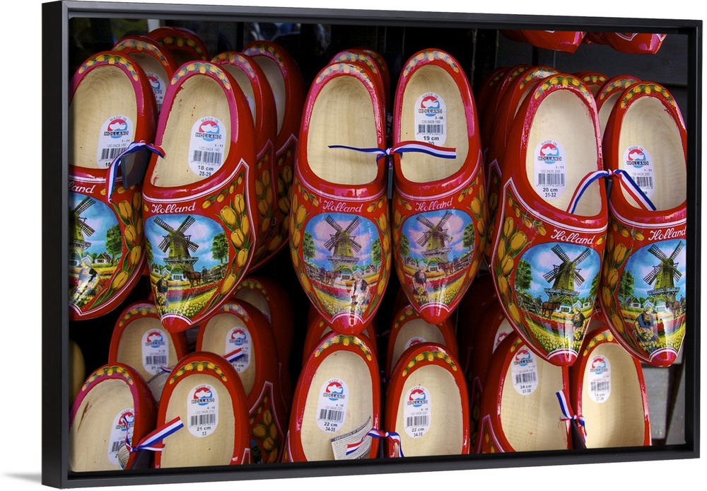 <p>Wooden Dutch clogs for sale in a market, Amsterdam, Netherlands, Europe</p>