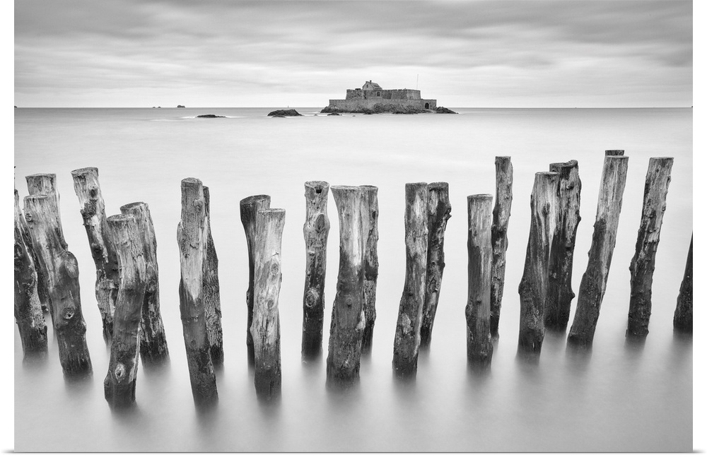 <p>Wooden Sea Defence And Fort National At High Tide, St. Malo, Ille Et Vilaine, Brittany, France</p>
