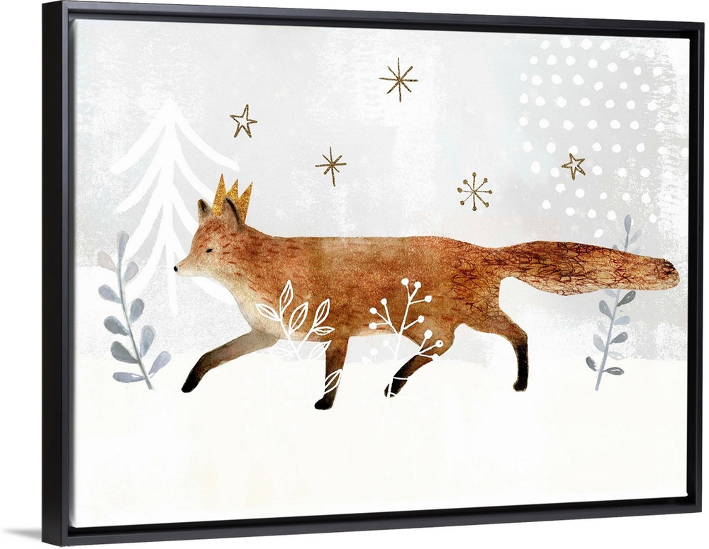<p>Woodland themed nursery decor featuring a fox in a whimsical snowscape.</p>
