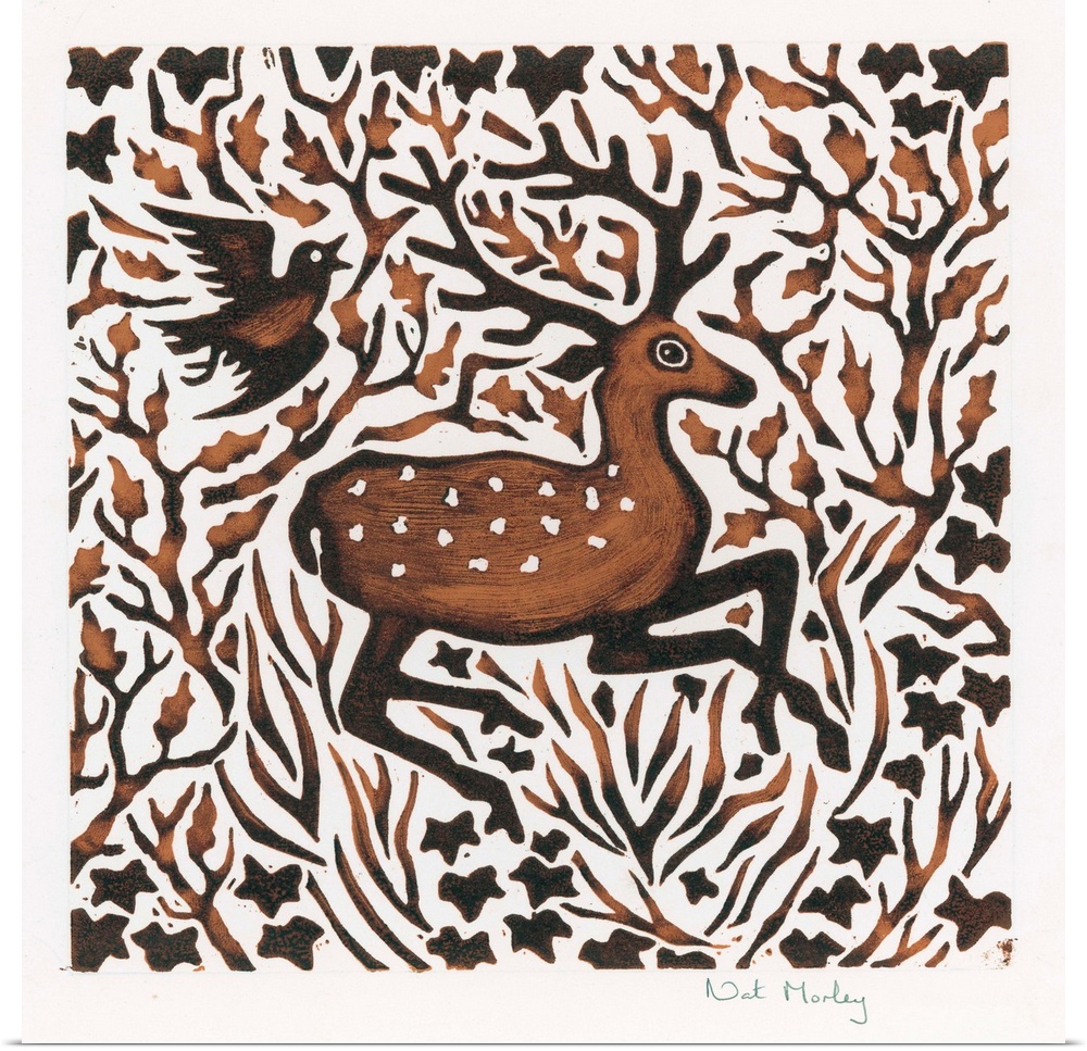 <p>Woodland Deer, 2000 (woodcut) by Morley, Nat (Contemporary Artist)</p>