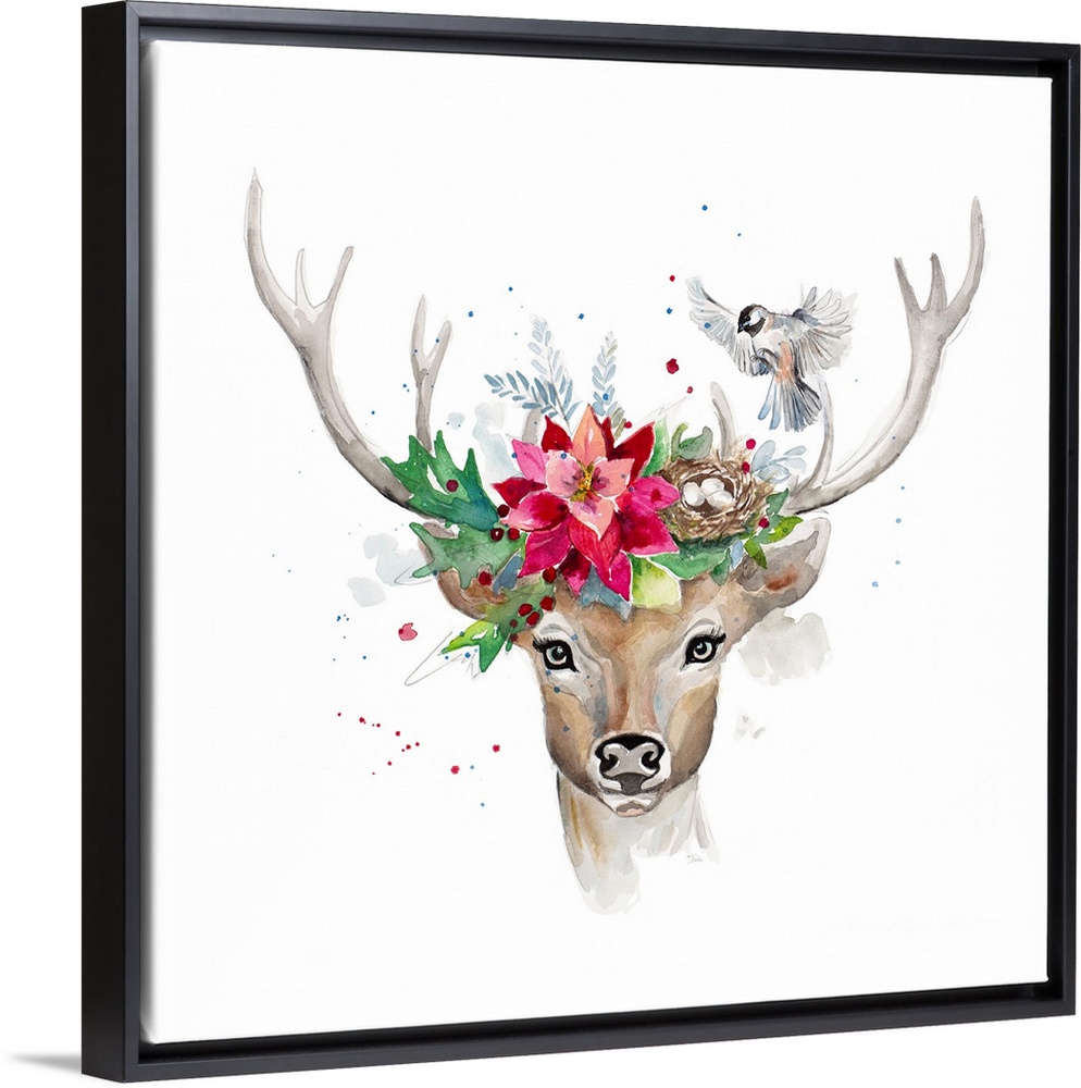 Art Decorative Art Florals Poinsettia Painting Patricia Pinto Wildlife Deer