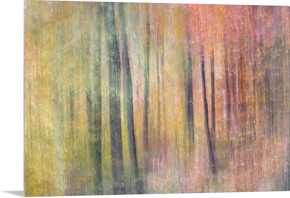 <p>Dreamy abstract photograph of woods with a soft, colorful overlay.</p>