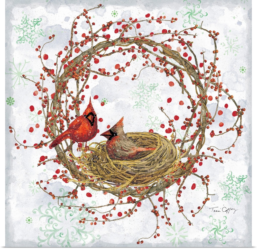 Art Tim Coffey Traditional Christmas Decorative Art Holidays Christmas Painting Bird Cardinal Garden Birds