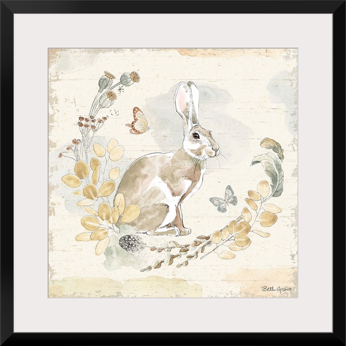 Art Children's Art Cabin Wall Art Decorative Art Beth Grove Painting Watercolor Wildlife Rabbit