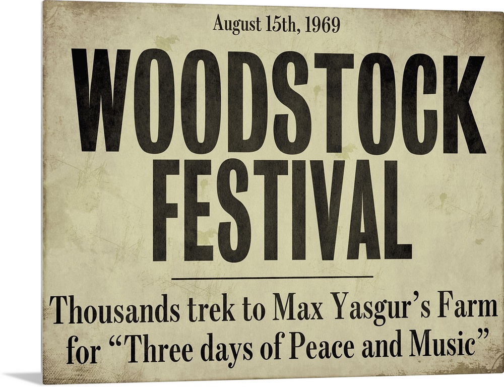 Art Color Bakery College Dorm Décor Music Lovers Educational History Graphic Art Music Typography & Calligraphy Woodstock Festival