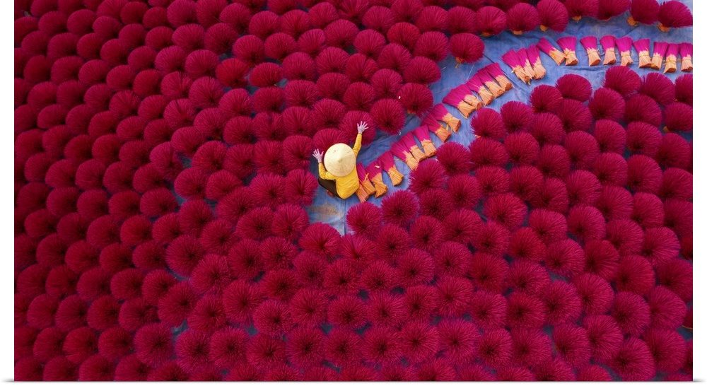 <p>Incense workers sits surrounded by thousands of incense sticks in Quang Phu Cau, Hanoi, Vietnam. Hanoi, Asia, Vietnam.</p>