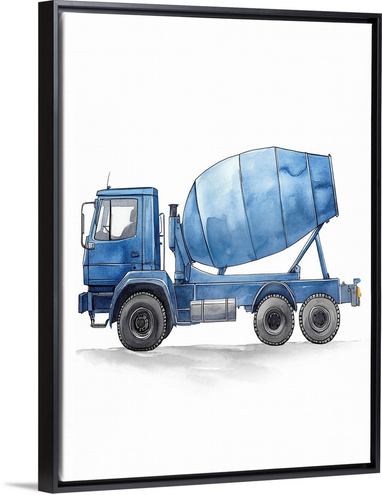 Art Children's Art Boys Room Blue Wall Art Decorative Art Painting Transportation Heavy Equipment Watercolor