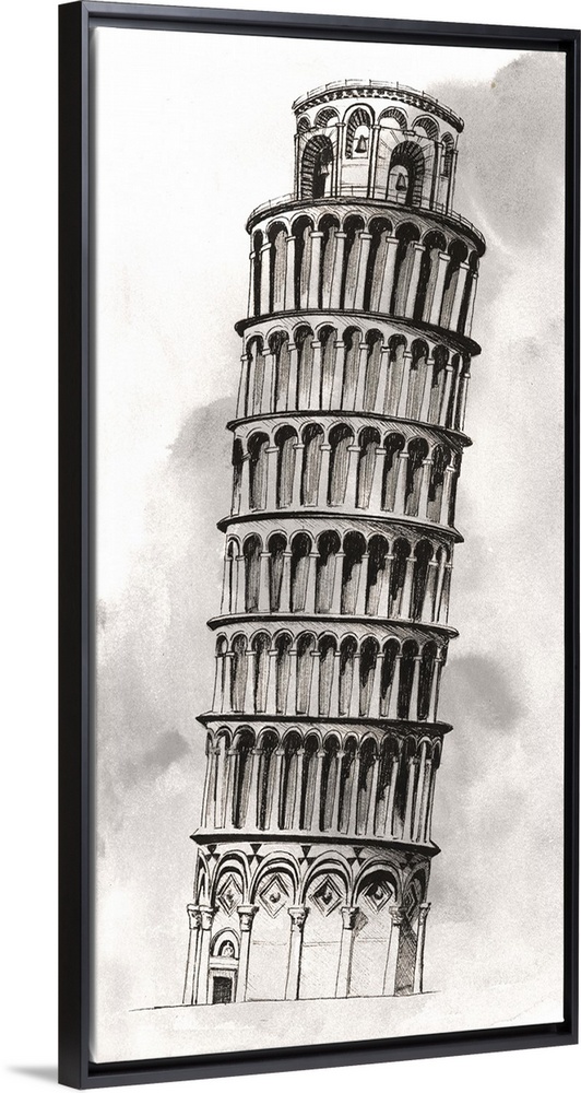 Architecture Art Decorative Art Drawing Grey Wall Art Painting Grace Popp Leaning Tower of Pisa
