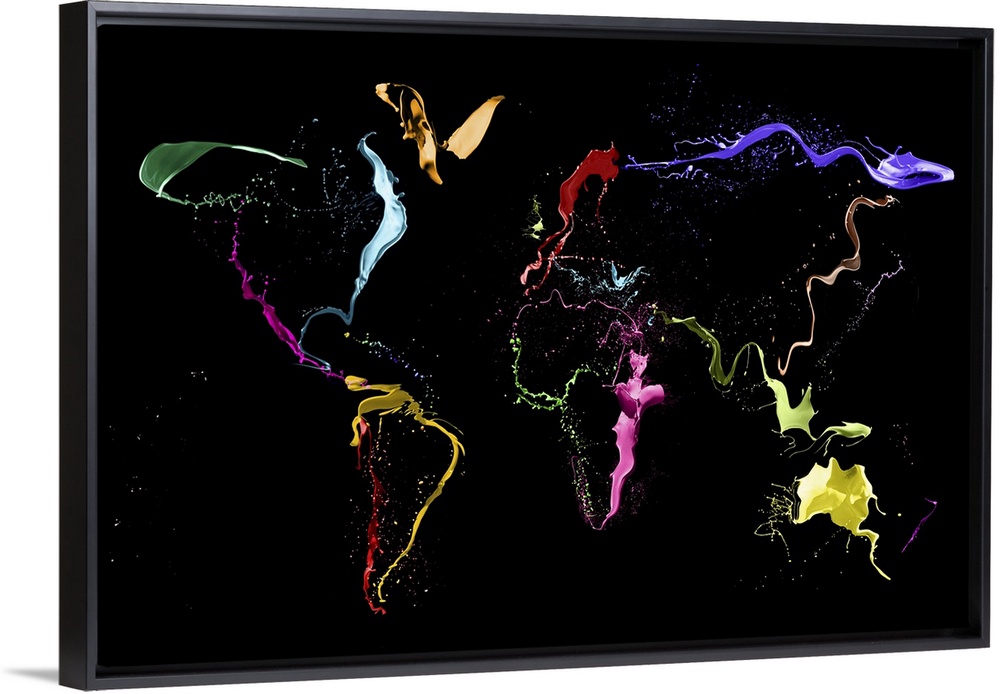 <p>Map of the World made from photographs of multicolored thrown paint.</p>