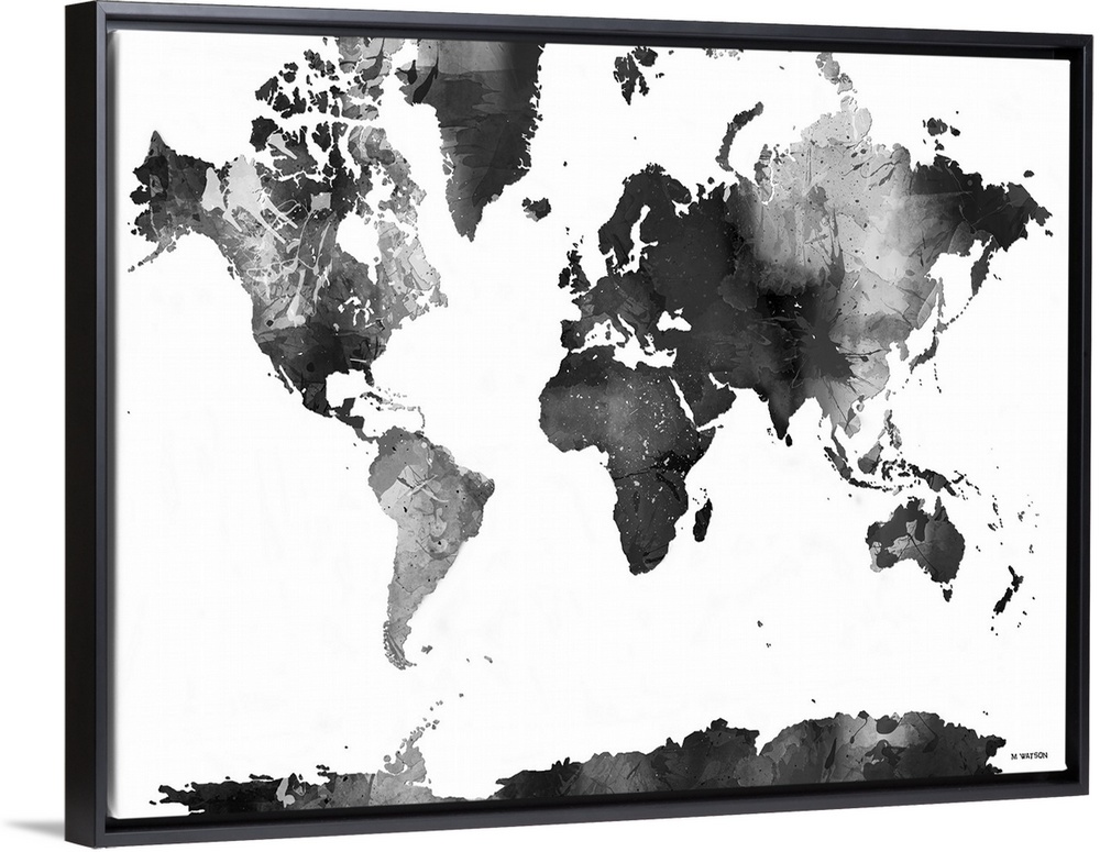 <p>Contemporary black and white watercolor world map.</p>
