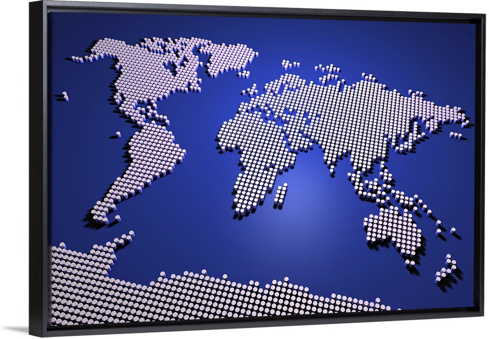 <p>A map of the world in blue, created from a 3D digital render. Maps come in many shapes and forms. Although current atlas style maps are highly functional, they have lost some of the creativity and artistic flare that can be seen in many antique maps. With this in mind, I have looked at creating some alternative modern style maps, hopefully bringing some interesting and attractive design elements to the humble map.</p>