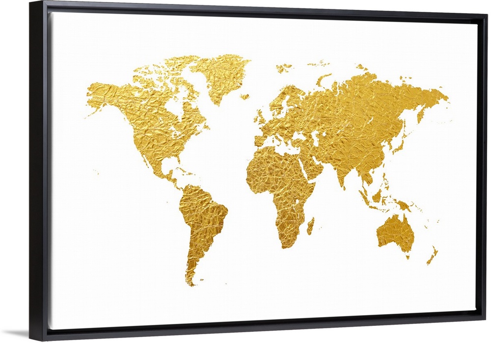 <p>World Map appearing to be made from gold foil.</p>