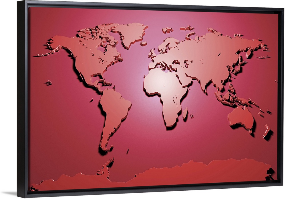 <p>A map of the world in red, created from a 3D digital render. Maps come in many shapes and forms. Although current atlas style maps are highly functional, they have lost some of the creativity and artistic flare that can be seen in many antique maps. With this in mind, I have looked at creating some alternative modern style maps, hopefully bringing some interesting and attractive design elements to the humble map.</p>
