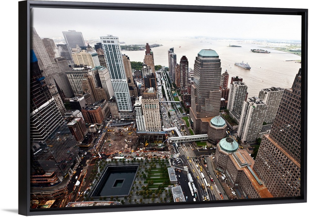 <p>World Trade Center Ground Zero site under reconstruction Sept. 8, 2011. Three days before the 10th anniversary of 9-11 Terrorist Attacks, the National September 11 Memorial and Museum is taking shape. In the Hudson River is the USS NEW YORK, built with 7.5 tons of steel from the World Trade Center in her bow. U.S. Marine Corps photo by Sgt. Randall A. Clinton</p>