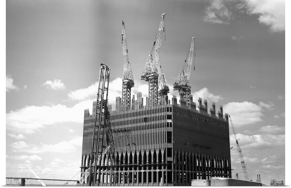 <p>The north tower of the World Trade Center under construction in the early 1970s.</p>