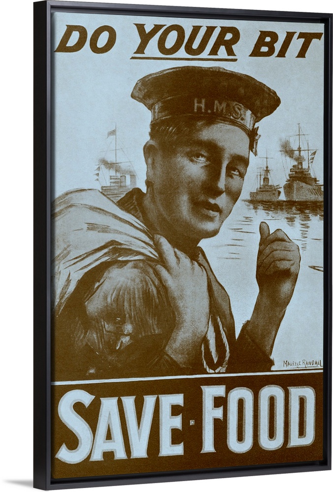 <p>World War 1 Food Economy Poster, 1917. Caption reads 'Do your bit: save food', message given by British sailor. The Year 1917 Illustrated.</p>