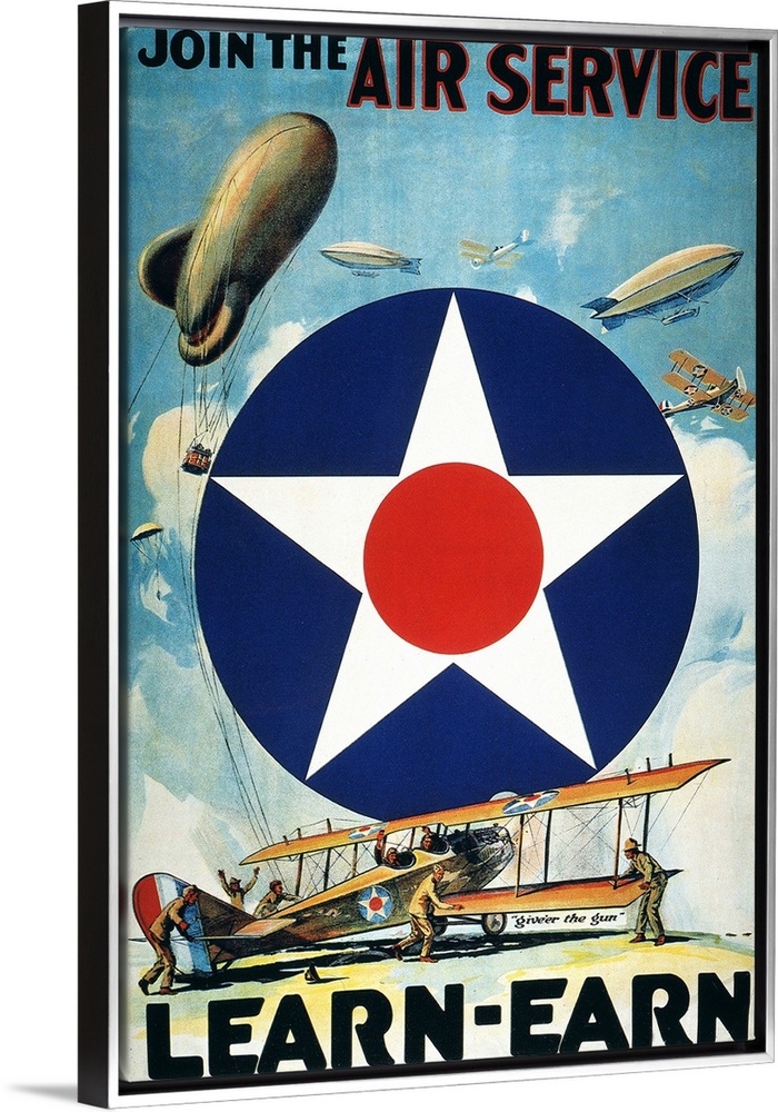 <p>'Join the Air Service, Learn-Earn.' U.S. Army Air Service recruiting poster, 1918.</p>