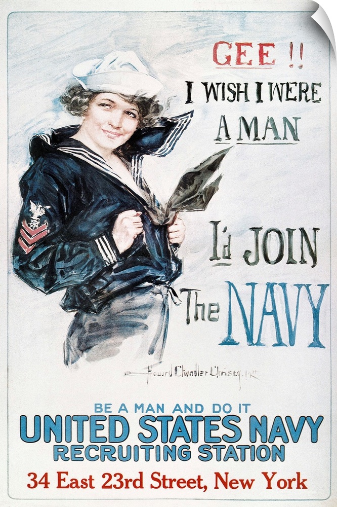 <p>'Gee!! I Wish I Were a Man, I'd Join the Navy.' American World War I recruiting poster, 1917, by Howard Chandler Christy.</p>