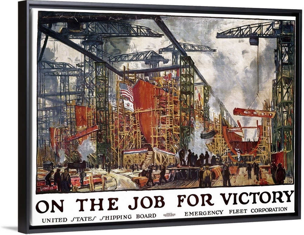 <p>On the job for victory. American World War I United States Shipping Board poster.</p>