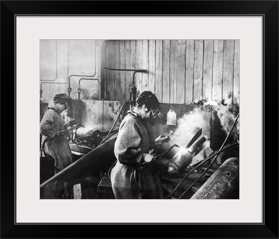 <p>Women welding bomb casings in an American munitions factory, c1917.</p>
