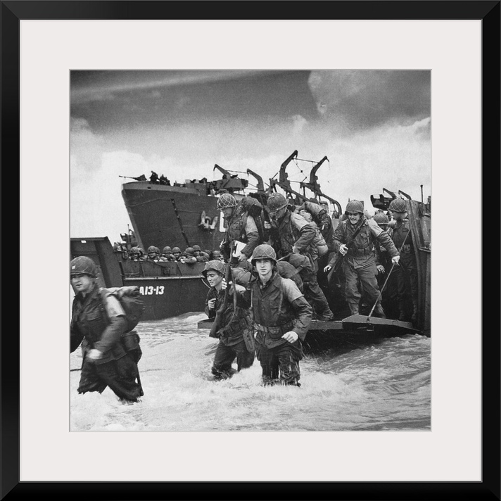 <p>American soldiers landing on the coast at Utah Beach during the invasion of Normandy, 6 June 1944.</p>