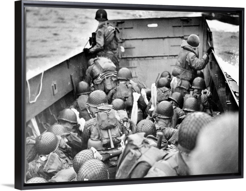 <p>U.S. Army assault troops aboard the Coast Guard landing craft off the coast of Normandy, France, 6 June 1944.</p>