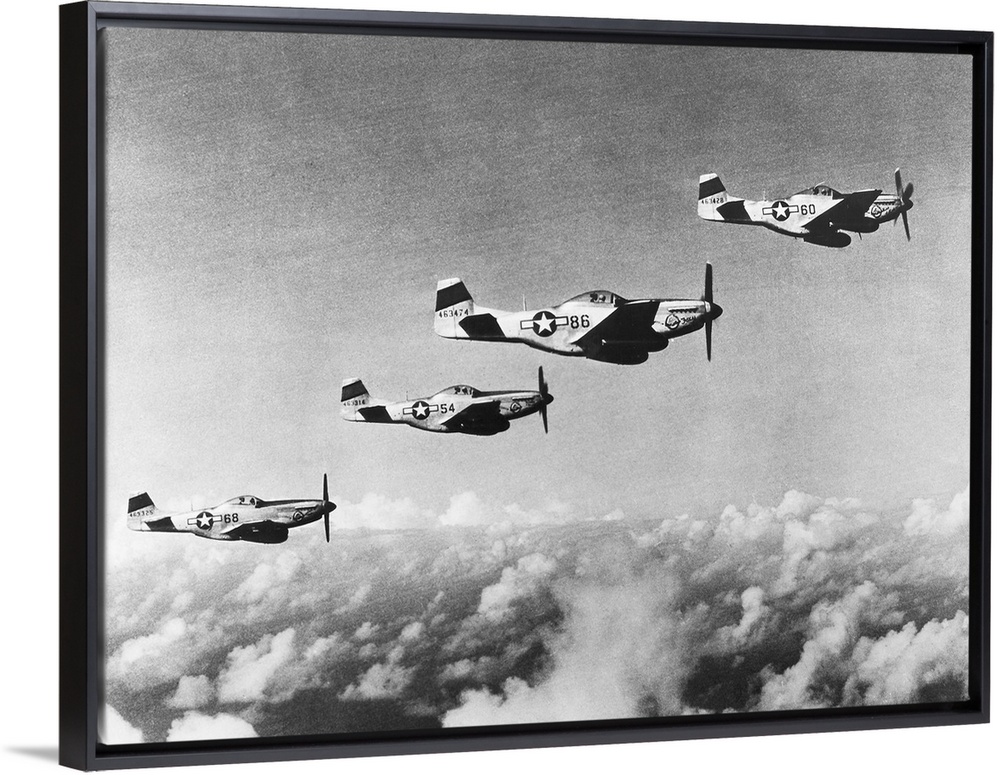 <p>American P-51 Mustang fighter planes over Iwo Jima, 1945.</p>