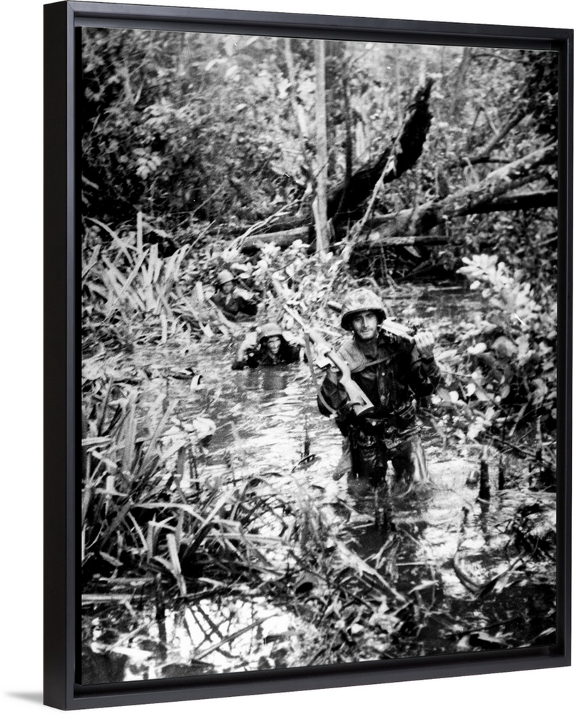 <p>U.S. Marines advancing through the jungle of Cape Gloucester, on the island of New Britain, New Guinea, 18 January 1944.</p>