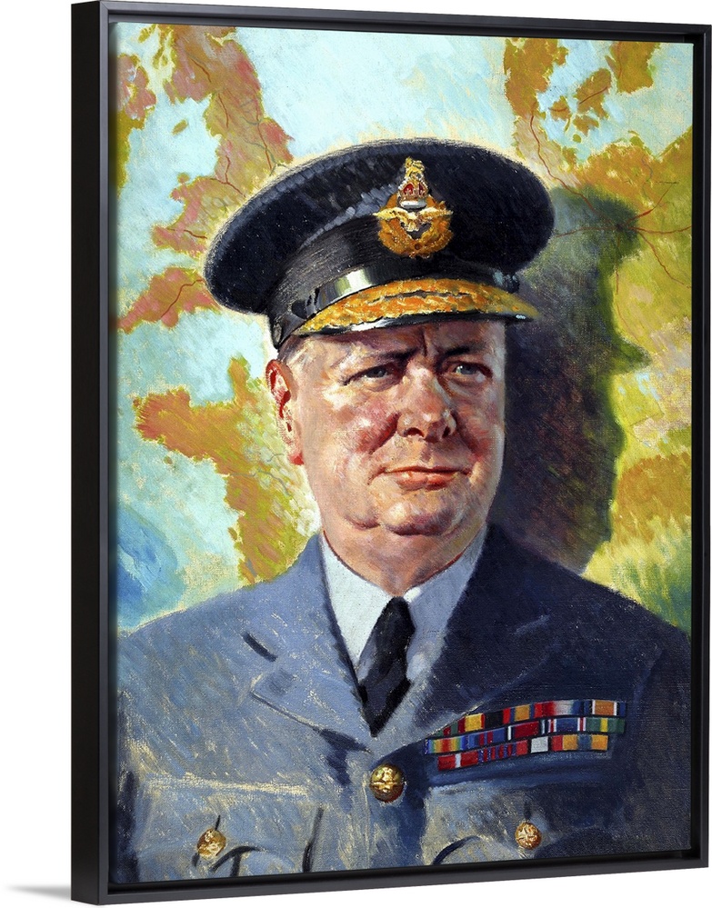 <p>World War II painting of Winston Churchill wearing his RAF uniform.</p>