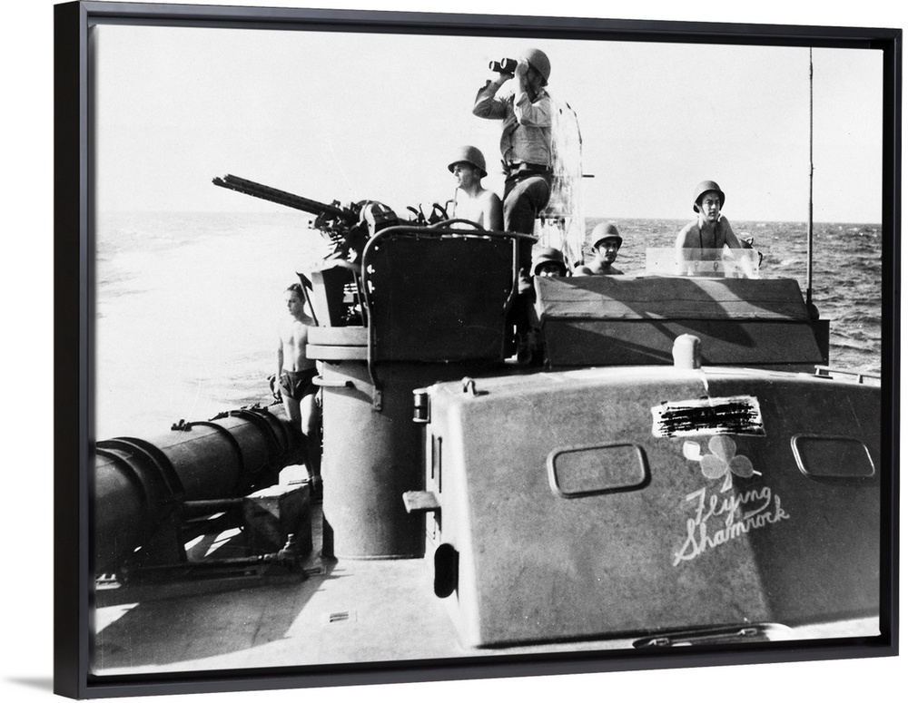 <p>The 'Flying Shamrock,' a U.S. Navy patrol boat, scouting for Japanese forces in the waters off New Guinea, 21 August 1943.</p>