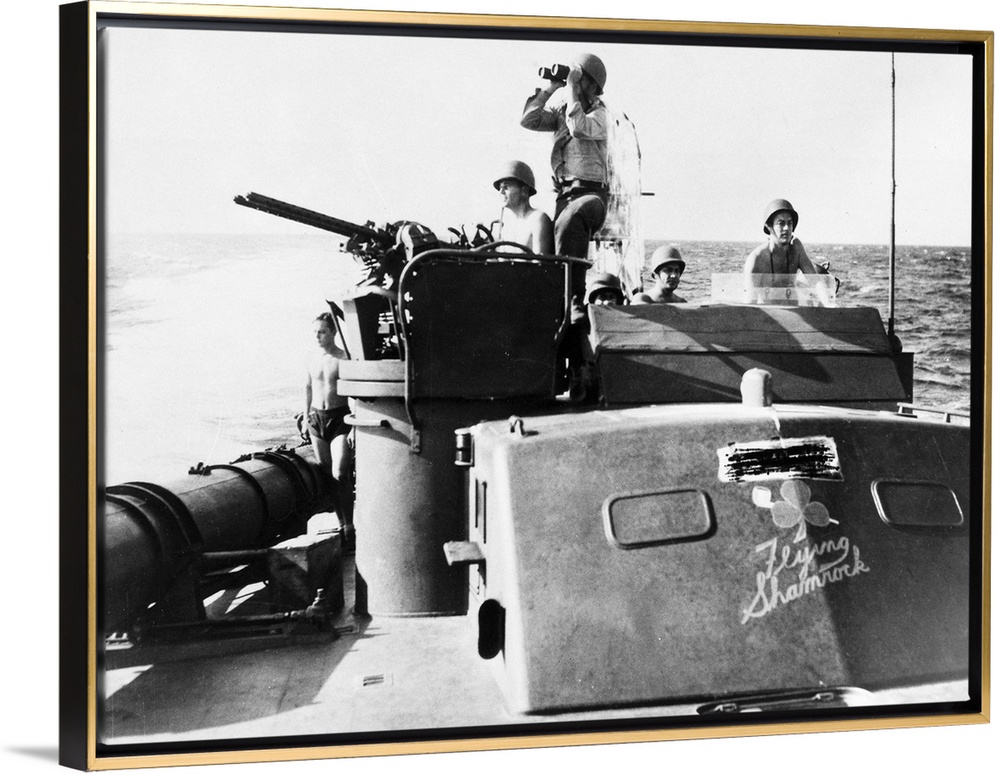 <p>The 'Flying Shamrock,' a U.S. Navy patrol boat, scouting for Japanese forces in the waters off New Guinea, 21 August 1943.</p>