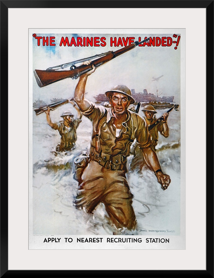 <p>The marines Have Landed!: American World War II recruiting poster, 1942, by James Montgomery Flagg.</p>