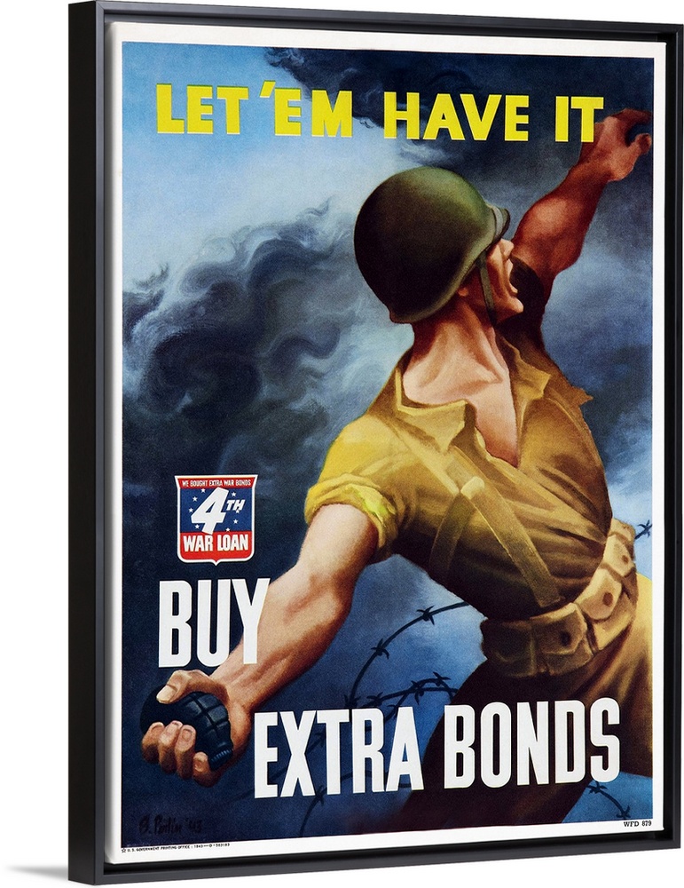 <p>World War II War Bonds poster art, 1943</p>