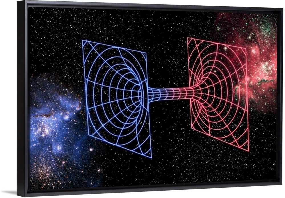 <p>Wormhole. Conceptual computer artwork showing a wormhole leading from one universe (blue) to another (red). Wormholes are a theoretical solution to Einstein's equations that describe the properties of space-time, the continuum of unified space and time, and are essentially a shortcut through space-time.</p>