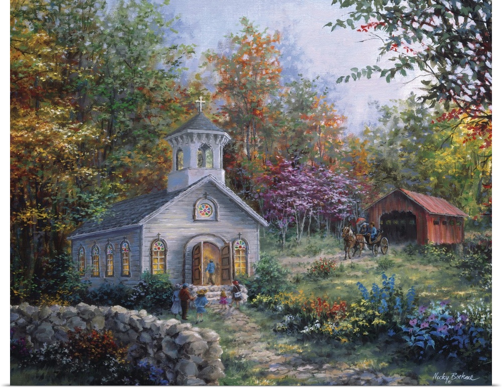 <p>Nicky Boehme imagines a world full of light and goodness in paintings that capture idyllic scenes of the laid-back life. Boehme is the consummate artist who painted as a young child and throughout her storied professional life. The dramatic interplay of light, color and mood create soothing scenery for wall art that will complement the atmosphere in quiet spaces such as bedrooms, reading nooks or dens. The world through the eyes and skilled brush strokes of Nicky Boehme glitters with romanticism and realism. You can almost taste the snow flurries covering a winter scene or hear the brook gurgling past a remote homestead.</p>