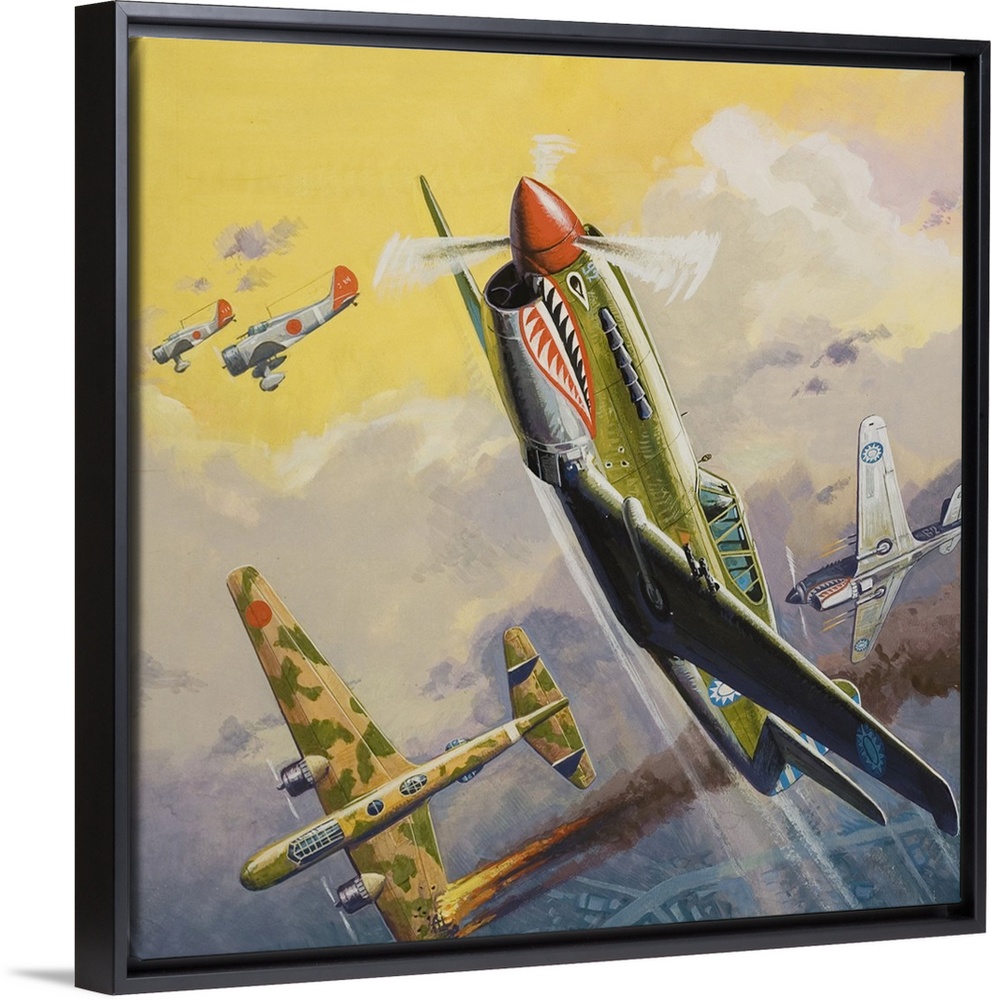 <p>Spanish Civil War. Colonel Chennault (inset) organised a volunteer force of American fliers who became famous throughout the world as the Flying Tigers. Original artwork for Look and Learn issue number 954 (3 May 1980).</p>