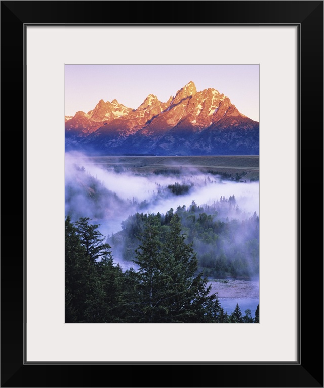 <p>Misty mountain scenic seen from the Snake River Overlook at dawn. Grand Teton National Park, Wyoming.</p>