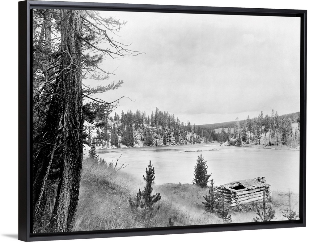 <p>Wyoming, Log Cabin, C1913. Army General Oliver O. Howard's Camp Along the Yellowstone River In Yellowstone National Park, Wyoming. Photograph, C1913.</p>