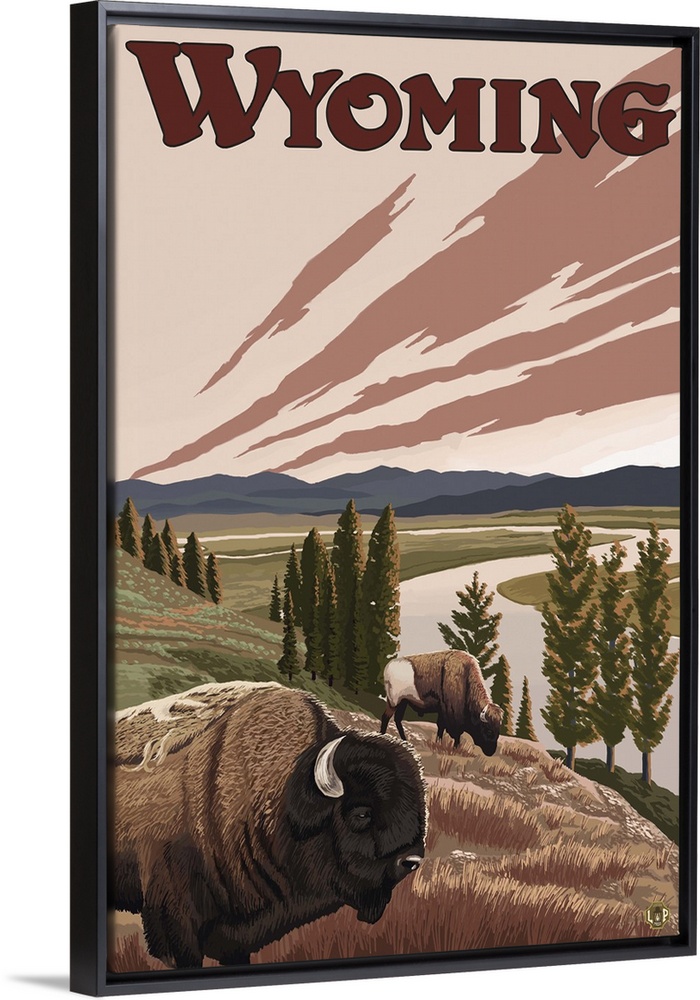 Art Lantern Press Wyoming Travel Posters Retro Travel Posters Wildlife Bison and Buffalo