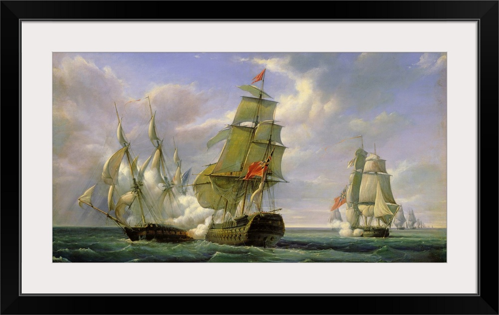 <p>XIR173163 Combat between the French Frigate 'La Canonniere' and the English Vessel 'The Tremendous', 21st April 1806, 1835 (oil on canvas); by Gilbert, Pierre Julien (1783-1860); 93x171 cm; Chateau de Versailles, France; French, out of copyright</p>