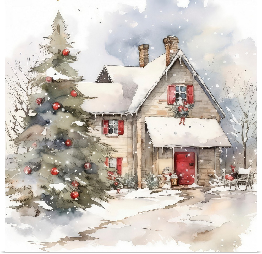 Architecture Houses Art Contemporary Art Farmhouse Christmas Winter Holidays Christmas Landscapes Snowscapes Painting The Golden Valley Watercolor
