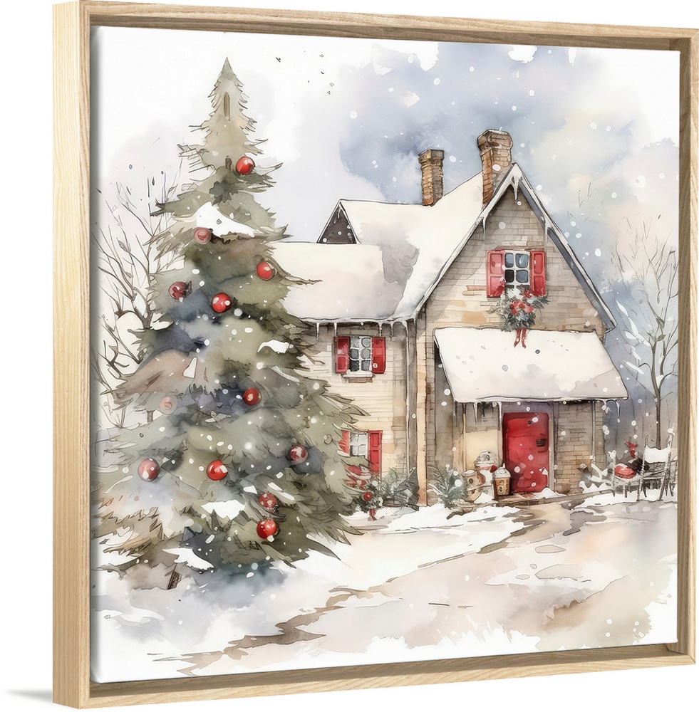 Architecture Houses Art Contemporary Art Farmhouse Christmas Winter Holidays Christmas Landscapes Snowscapes Painting The Golden Valley Watercolor