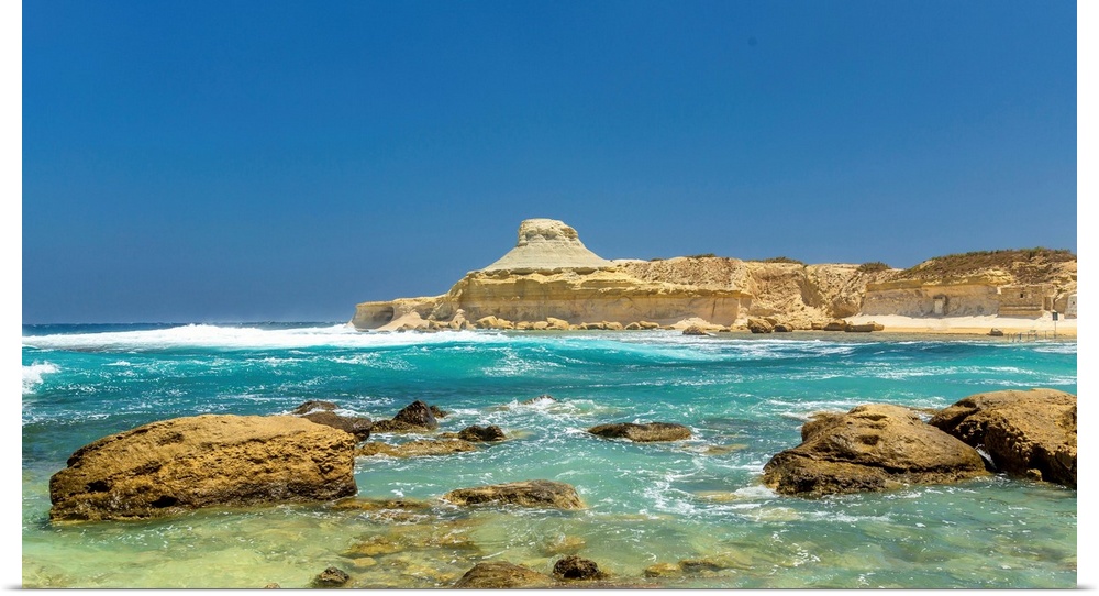 <p>Xwejni Bay, a centre for swimmers and divers, near Zebbug, Gozo, Malta, Mediterranean, Europe</p>