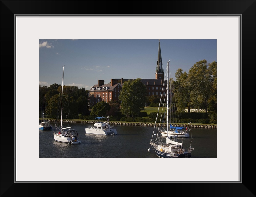 <p>Yachts in a creek, St. Mary's Church, Annapolis, Anne Arundel County, Maryland, USA</p>