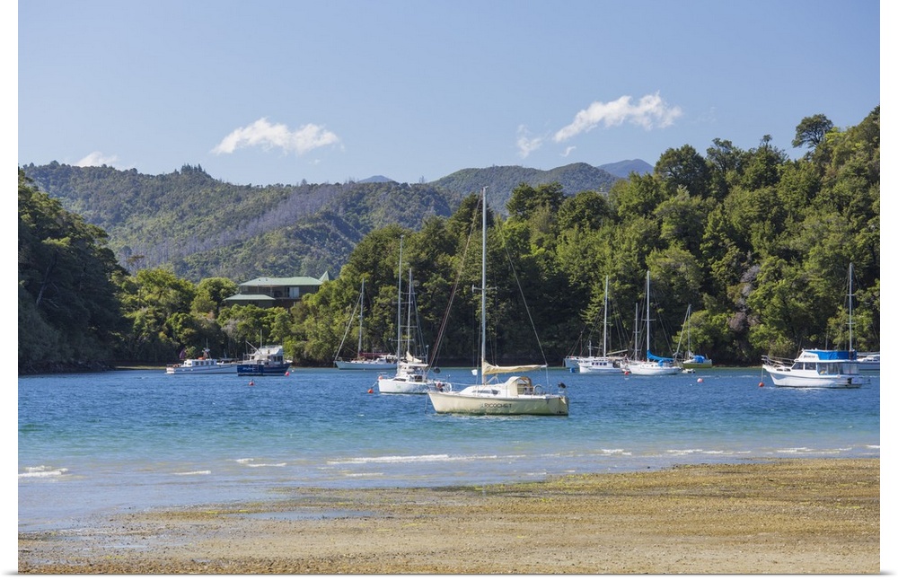 <p>Yachts moored in the sheltered harbour, Ngakuta Bay, near Picton, Marlborough, South Island, New Zealand, Pacific</p>